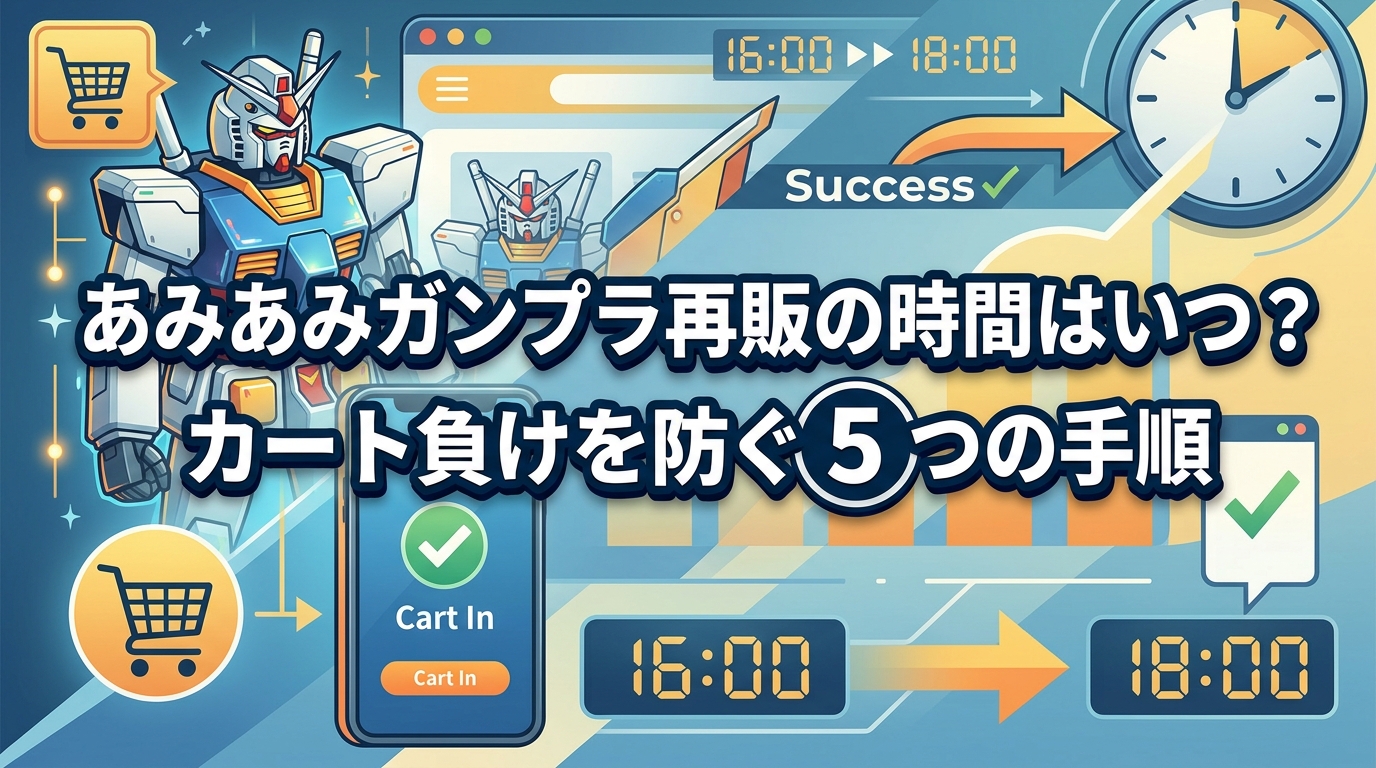 この記事では、あみあみでガンプラ再販が開始される正確な時間帯の傾向から、カート負けを防いで勝率を劇的に上げる「5つの手順」まで徹底解説します。